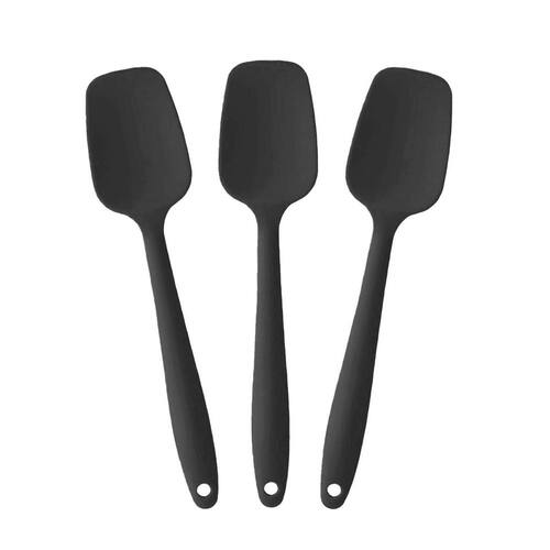 Kit 3 Espátulas De Silicone 28Cm Preta Reforçada Funda Reta-