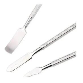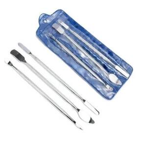 - Desenvolvida com material maciço, o Jogo de Espátulas para abertura de equipamentos é um produto que se destaca pela sua rigidez e qualidade uma vez que possui um corpo prolongado que melhora o manuseio junto às suas diferentes extremidades