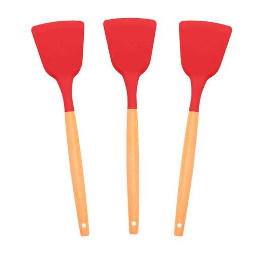Kit 3 Espátulas Silicone Chapa 32Cm Cabo Madeira Vermelha -