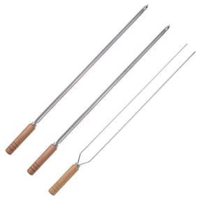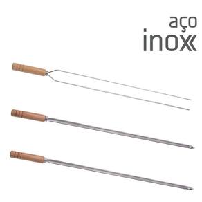 Material: Fabricado em aço inoxidável de alta qualidade, garantindo durabilidade, resistência ao calor e facilidade de limpeza. Comprimento: 85 cm, ideal para alcançar facilmente os alimentos na grelha e facilitar o manuseio durante o preparo. Design: Cabo ergonômico e resistente, projetado para proporcionar conforto e durante o uso. As pontas afiadas dos espetos facilitam a inserção dos alimentos.