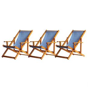 Kit 3 Espreguiçadeira Preguiçosa Dobrável Mel Cb-azul 3 ESPREGUIÇADEIRAS ENVERNIZADA MEL C/BSabe aquele final de tarde que você tanto espera para tirar um descanso merecido? Ou aquela viagem para a praia programada a meses com a família? Pois é, nossas cadeiras espreguiçadeira serve exatamente para esses momentos, com várias opções de cores, os tecidos além de charmosos são hidro-repelentes e se adequam a qualquer ambiente, facilmente removíveis para higienização.Estrutura 100% de madeira maciça de ótima qualidade, a espreguiçadeira é totalmente dobrável e reclinável (4 posições de ângulo), com descanso para braço, sendo possível montar invertida sem o encosto de braço, perfeita para seu lazer em todos os ambientes, esse é o item que definitivamente não pode faltar na vida de quem de fato, quer aproveitar bons momentos! FICHA TÉCNICA DO PRODUTO:04 Níveis de Regulagem de Altura;Tecido Reforçado;Fabricada em Madeira Maciça Pinus;Peso aproximado: 7,5 Kg;Suporta aproximadamente 120 kg;Cor da Madeira: Mel Dimensões aproximadas do Produto:Altura 1: 69 cm;Altura 2: 82 cm;Altura 3: 91 cm;Altura 4: 100 cm;Profundidade: 105 cm. Dimensão aproximada total:Comprimento: 135 cm;Largura: 66 cm; Informações Adicionais:Garantia: 90 dias contra defeitos de fabricação.Acompanha 3 cadeiras Obs. A cor pode variar da foto conforme a tonalidade da madeira e iluminação.. !! Marca: Brasil Móveis