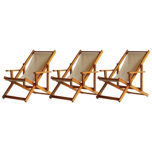 Kit 3 Espreguiçadeira Preguiçosa Dobrável Mel Cb-bege 3 ESPREGUIÇADEIRAS ENVERNIZADA MEL C/BSabe aquele final de tarde que você tanto espera para tirar um descanso merecido? Ou aquela viagem para a praia programada a meses com a família? Pois é, nossas cadeiras espreguiçadeira serve exatamente para esses momentos, com várias opções de cores, os tecidos além de charmosos são hidro-repelentes e se adequam a qualquer ambiente, facilmente removíveis para higienização.Estrutura 100% de madeira maciça de ótima qualidade, a espreguiçadeira é totalmente dobrável e reclinável (4 posições de ângulo), com descanso para braço, sendo possível montar invertida sem o encosto de braço, perfeita para seu lazer em todos os ambientes, esse é o item que definitivamente não pode faltar na vida de quem de fato, quer aproveitar bons momentos! FICHA TÉCNICA DO PRODUTO:04 Níveis de Regulagem de Altura;Tecido Reforçado;Fabricada em Madeira Maciça Pinus;Peso aproximado: 7,5 Kg;Suporta aproximadamente 120 kg;Cor da Madeira: Mel Dimensões aproximadas do Produto:Altura 1: 69 cm;Altura 2: 82 cm;Altura 3: 91 cm;Altura 4: 100 cm;Profundidade: 105 cm. Dimensão aproximada total:Comprimento: 135 cm;Largura: 66 cm; Informações Adicionais:Garantia: 90 dias contra defeitos de fabricação.Acompanha 3 cadeiras Obs. A cor pode variar da foto conforme a tonalidade da madeira e iluminação.. !! Marca: Brasil Móveis
