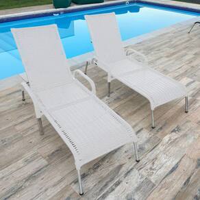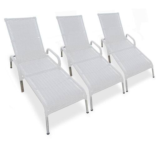 Kit 3 Espreguiçadeiras/Cadeira Madrid Reclináveis p/ Piscina - Branco
