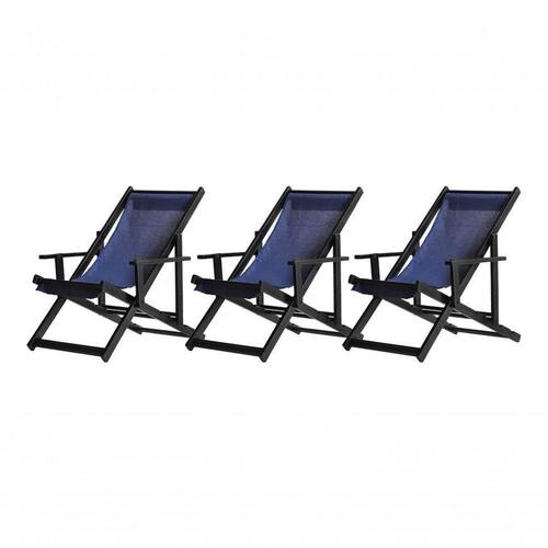 Kit 3 Espreguiçadeiras Dobrável Black Cb-azul Escuro 3 ESPREGUIÇADEIRAS ENVERNIZADAS BLACK C/BSabe aquele final de tarde que você tanto espera para tirar um descanso merecido? Ou aquela viagem para a praia programada a meses com a família? Pois é, nossas cadeiras espreguiçadeira serve exatamente para esses momentos, com várias opções de cores, os tecidos além de charmosos são hidro-repelentes e se adequam a qualquer ambiente, facilmente removíveis para higienização.Estrutura 100% de madeira maciça e verniz especial, que garante sua qualidade e durabilidade, a espreguiçadeira é totalmente dobrável e reclinável (4 posições de ângulo), com descanso para braço, sendo possível montar invertida sem o encosto de braço, perfeita para seu lazer em todos os ambientes, seja ele externo ou interno, esse é o item que definitivamente não pode faltar na vida de quem de fato, quer aproveitar bons momentos! FICHA TÉCNICA DO PRODUTO:04 Níveis de Regulagem de Altura;Tecido Reforçado;Fabricada em Madeira Maciça Pinus;Peso aproximado: 7,5 Kg;Suporta aproximadamente 120 kg;Cor da Madeira: Preta Dimensões aproximadas do Produto:Altura 1: 69 cm;Altura 2: 82 cm;Altura 3: 91 cm;Altura 4: 100 cm;Profundidade: 105 cm. Dimensão aproximada total:Comprimento: 135 cm;Largura: 66 cm; Informações Adicionais:Garantia: 90 dias contra defeitos de fabricação.Acompanha 3 cadeiras Obs. A cor pode variar da foto conforme a tonalidade da madeira e iluminação.. !! Marca: Brasil Móveis
