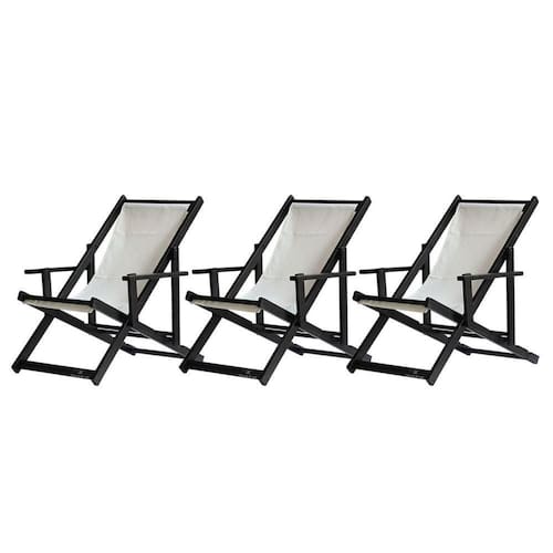 Kit 3 Espreguiçadeiras Dobrável Black Cb-branco 3 ESPREGUIÇADEIRAS ENVERNIZADAS BLACK C/BSabe aquele final de tarde que você tanto espera para tirar um descanso merecido? Ou aquela viagem para a praia programada a meses com a família? Pois é, nossas cadeiras espreguiçadeira serve exatamente para esses momentos, com várias opções de cores, os tecidos além de charmosos são hidro-repelentes e se adequam a qualquer ambiente, facilmente removíveis para higienização.Estrutura 100% de madeira maciça e verniz especial, que garante sua qualidade e durabilidade, a espreguiçadeira é totalmente dobrável e reclinável (4 posições de ângulo), com descanso para braço, sendo possível montar invertida sem o encosto de braço, perfeita para seu lazer em todos os ambientes, seja ele externo ou interno, esse é o item que definitivamente não pode faltar na vida de quem de fato, quer aproveitar bons momentos! FICHA TÉCNICA DO PRODUTO:04 Níveis de Regulagem de Altura;Tecido Reforçado;Fabricada em Madeira Maciça Pinus;Peso aproximado: 7,5 Kg;Suporta aproximadamente 120 kg;Cor da Madeira: Preta Dimensões aproximadas do Produto:Altura 1: 69 cm;Altura 2: 82 cm;Altura 3: 91 cm;Altura 4: 100 cm;Profundidade: 105 cm. Dimensão aproximada total:Comprimento: 135 cm;Largura: 66 cm; Informações Adicionais:Garantia: 90 dias contra defeitos de fabricação.Acompanha 3 cadeiras Obs. A cor pode variar da foto conforme a tonalidade da madeira e iluminação.. !! Marca: Brasil Móveis