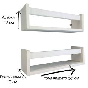 Kit 3 Estantes de Livros de Criança Prateleira Revisteiro de Parede Infantil Mdf 55 cm Nichos enviados montados para você . de acabamento perfeito Qualidade comprovada por nossos clientes. Fabricação própria da Arte Cedro. O que vem: 3 prateleiras porta livros, brinquedos e multiuso em mdf tx. 1 kit instalação do produto - Nichos para organização e decoração dos ambientes. - Podem ser instalados em Várias posições de acordo com sua necessidade. - Produto versátil, perfeito para qualquer ambiente, quarto, cozinha, sala, banheiro etc. - Fácil instalação, bastando fixar na parede. - Suporta até 8 kilos cada. Medidas 55 cm comprimento 12 cm altura 10 cm profundidade Material MDF 15mm com acabamento branco , superior á pintura em qualidade e durabilidade. Produzido com fita de borda em PVC, incomparável ás de papel utilizadas no mercado. Marca: Arte Cedro