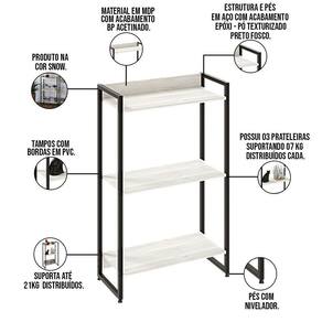 Com o Kit 3 Estantes Multiuso Escritório Industrial 3 Prateleiras Areta 104x60cm C01 Snow - Lyam Decor, o conceito industrial ficará evidente no seu ambiente, tornando o mesmo muito mais moderno, sofisticado e organizado, garantindo isso com 03 prateleiras que deixam tudo prático e funcional. Uma característica muito forte dos móveis industriais é a união do tubular de estrutura exposta com a madeira, que dão todo o charme para agregar no estilo que está entre os mais buscados no ramo de arquitetura e decoração.