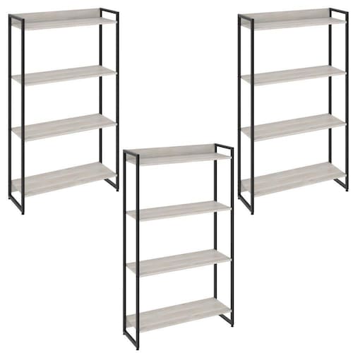 Com o Kit 3 Estantes Multiuso Escritório Industrial 4 Prateleiras Areta 145x80cm C01 Snow - Lyam Decor, o conceito industrial ficará evidente no seu ambiente, tornando o mesmo muito mais moderno, sofisticado e organizado, garantindo isso com 04 prateleiras que deixam tudo prático e funcional. Uma característica muito forte dos móveis industriais é a união do tubular de estrutura exposta com a madeira, que dão todo o charme para agregar no estilo que está entre os mais buscados no ramo de arquitetura e decoração.