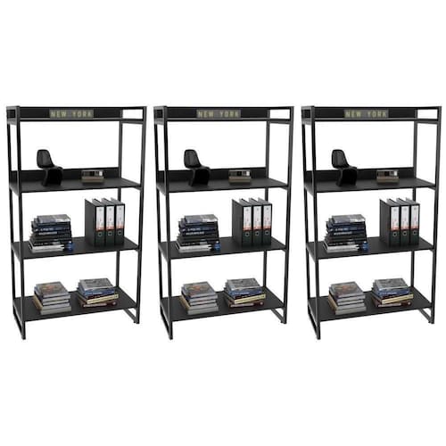 Características do Produto Material da Estrutura: MDP BP 15 mm/Aço. Peso Suportado: 5 Kg por prateleira. Tonalidade: Preto Onix. Acabamento: BP Acetinado e Pintura Epóxi. Escala de Brilho: Fosco. Possui Prateleiras: Sim. Material das Prateleiras: MDP. Possui Pés: Sim, Aço com pintura epóxi. Possui Rodízios: Não. Diferenciais: - Design moderno. - Fita de borda em PVC. - Pés niveladores. - Estrutura reforçada. Sistema de Montagem: Minifix / Cavilhas / Parafs. Manual de Montagem: Sim. Complexidade da Montagem: Baixa. Conteúdo da Embalagem: 3 Estantes. Volumes: 3 Volumes. Garantia do Fabricante: 3 meses contra defeito de fabricação. Montagem: Recomendamos que seja feita por um . Recomendação de Limpeza: Utilize pano levemente úmido.