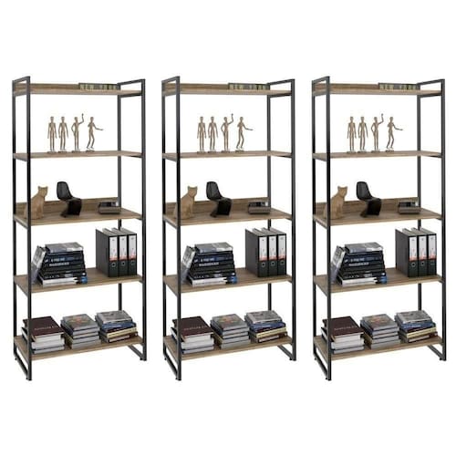 Características do Produto Material da Estrutura: MDP BP 15 mm/Aço. Peso Suportado: 5 Kg por prateleira. Tonalidade: Carvalho. Acabamento: BP Acetinado e Pintura Epóxi. Escala de Brilho: Fosco. Possui Prateleiras: Sim. Material das Prateleiras: MDP. Possui Pés: Sim, Aço com pintura epóxi. Possui Rodízios: Não. Diferenciais: - Design moderno. - Fita de borda em PVC. - Pés niveladores. - Solda com acabamento suavizado. - Estrutura reforçada. Sistema de Montagem: Minifix / Cavilhas / Parafs. Manual de Montagem: Sim. Complexidade da Montagem: Baixa. Conteúdo da Embalagem: 3 Estantes. Volumes: 3 Volumes. Garantia do Fabricante: 3 meses contra defeito de fabricação. Montagem: Recomendamos que seja feita por um . Recomendação de Limpeza: Utilize pano levemente úmido.