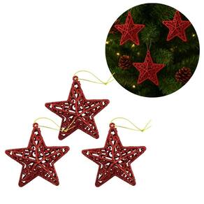 Kit Estrela Natalina Arabesco Tridimensional Vazado com Glitter Vermelho – Jogo com 3 Unidades