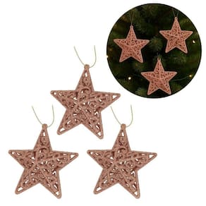 Kit Estrela Natalina Arabesco Tridimensional Vazado com Glitter Rosê gold Jogo com 3 Unidades