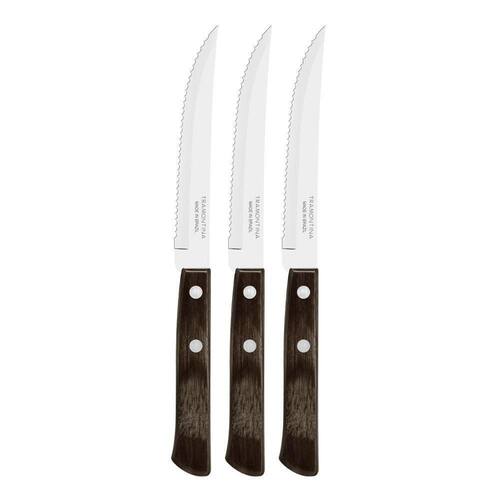 3 - Facas de Churrasco Tramontina Polywood Inox Cabo Castanho.