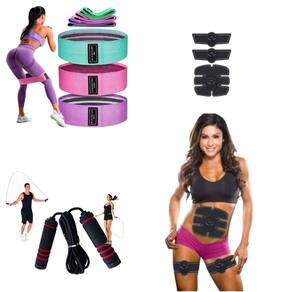 Kit 3 Faixas + Corda de Pular + Estimulador de Abdômen, Coxa Kit Fitness Completo - Treino para Coxas, Glúteos, Abdômen e Cardio Transforme seu treino com o Kit Fitness Completo, ideal para quem busca resultados rápidos e eficazes no conforto de casa Nosso kit é composto por: