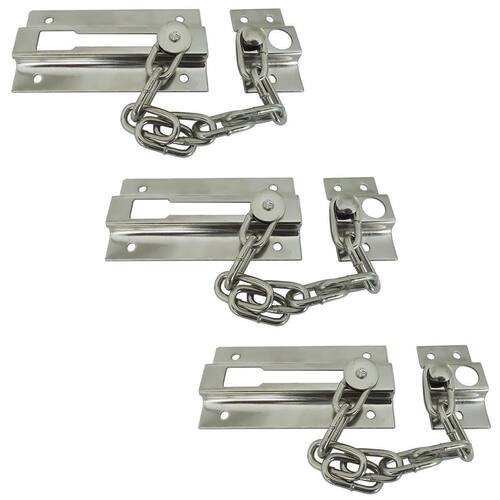 Kit com 3 Fechos Pega Ladrão com Corrente 88mm x 25mm para Portas Guepar O fecho para portas cromado com corrente leva mais segurança para a sua casa. Kit completo para instalação em portas, com parafusos. - Marca: Guepar - Referência: 861-3060-3X - Jogo exclusivo com 3 fechos para porta - Fabricado em ferro - Acabamento Cromado - Acompanha parafusos - Comprimento da base porta; 8,5cm - Largura da base porta; 4,3cm - Comprimento da base batente; 2,5cm - Largura da base batente; 4,3cm - Comprimento da corrente; 15cm - Largura da corrente; 12mm - Grossura da chapa; 1mm - Peso bruto: 96 gramas - : 90 dias Marca: Não Informado Ean: 7734625901826