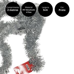 - 03 Unidades Festão Metalizado Natalino Prata Brilhante – 5cm x 2 metros