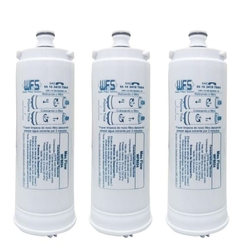 Kit com 3 filtros refil compatíveis com purificador de água New Up. Remove cloro, elimina sabores, retém partículas de sujeira, barro e ferrugem. Ajuda a elevar o pH. Eficiência da retenção de partículas: Classe III. Eficiência da redução de Cloro livre: Aprovado. Eficácia Anti Microbiana: Aprovado. Eficiência bacteriológica: não se aplica. Produto de acordo com a norma ABNT NBT 16098:2012. Elemento filtrante destinado ao uso em água que atenda a portaria N 2.914 do Ministério da Saúde.Tipo