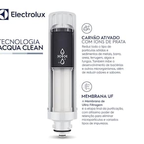 Purificação da água, retenção de partículas, redução de odores e sabores, controle microbiológicoVendido e entregue por Loja Electrolux