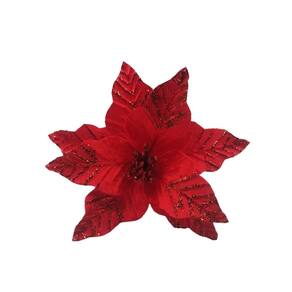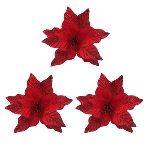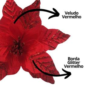 Com essa flor de Natal em veludo vermelho com glitter vermelho, sua decoração ficará ainda mais sofisticada, iluminando o ambiente com um charme delicado e festivo.