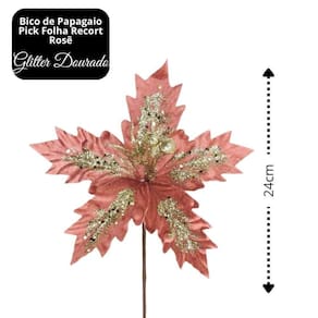 Kit 3 Flores Bico de Papagaio Veludo Rosê Glitter Dourado 24cm