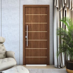 Imagine uma porta que une a beleza clássica da madeira com a praticidade e a uniformidade do MDF, finalizada com um verniz elegante que realça seus detalhes e oferece proteção duradoura, e com um enchimento inteligente que a torna mais leve sem comprometer a sua estrutura.
