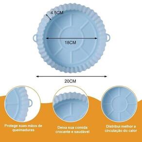 1 Cabe em qualquer tipo de airfryer Resposta: O formato do produto é redondo e super maleável, portanto cabe tanto em airfryer redonda quanto quadrada. Você pode tomar como base as medidas do produto, que são: Largura total: 20cm / Comprimento: 18cm / altura: 4,5cm