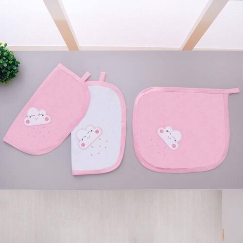 Kit 3 Fraldas Pano De Boca Malha Para Bebê Nuvem Rosa