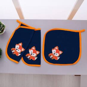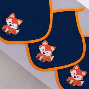 Kit 3 Fraldas Pano De Boca Malha Para Bebê Raposa Azul Marinho