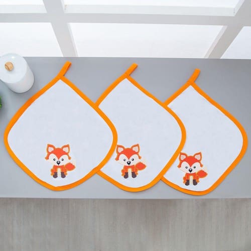 Kit 3 Fraldas Pano De Boca Malha Para Bebê Raposa Branco