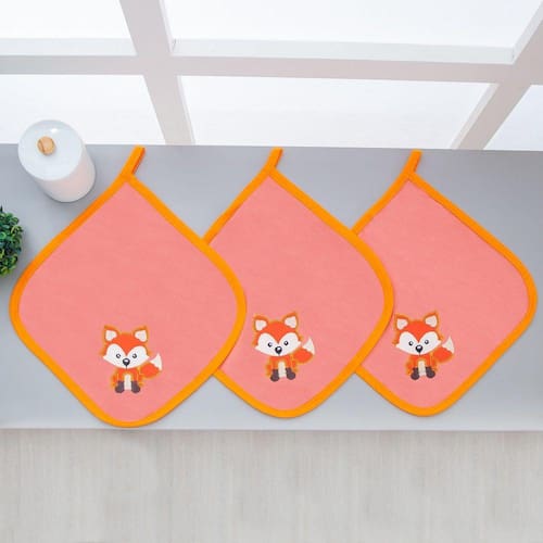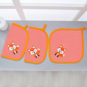 Kit 3 Fraldas Pano De Boca Malha Para Bebê Raposa Coral