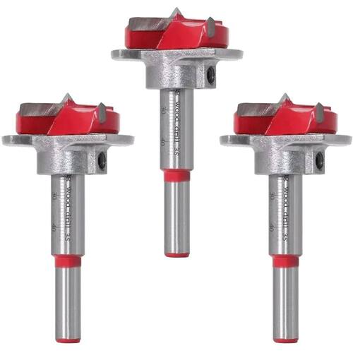 Kit com 3 Fresas Broca Forstner 35mm para Dobradiça Caneco com Limitador de Profundidade Fresa com dente de vídea/metal haste 8mm diâmetro 35mm duro tipo Forstner indicada para trabalhos em madeira e derivados na colocação de dobradiças tipo caneco. - Marca: Dremax - Referência: BRF35 - Jogo com 3 Fresas dobradiça tipo caneco 35 mm com 3 dentes - Fresa com dente de vídea/metal duro indicada para trabalhos em madeira e derivados na colocação de dobradiças tipo caneco - Possui 3 dentes de vídea/metal duro, conferindo maior durabilidade - Diâmetro do corte: 35mm - Haste diâmetro x comprimento :8 mm x 20 mm / 12 mm x 25 mm - : 90 dias contra defeitos de fabricação Marca: Não Informado