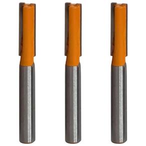 Jogo com 3 Fresas Retas 6mm Haste 6mm Corte Duplo para Madeira Dentes de Metal Duro