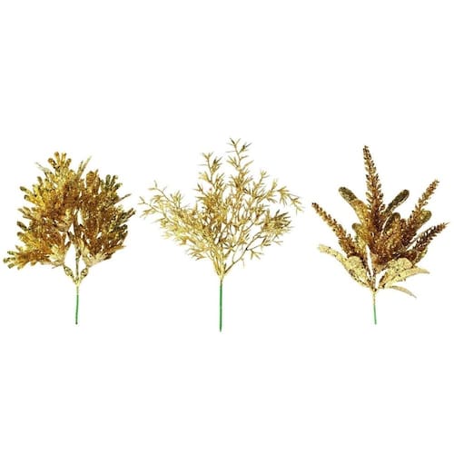 03 unidades Galho De Natal Pick Folhagem Glitter Dourada Full 25cm – Magizi (3 modelos)