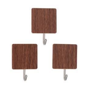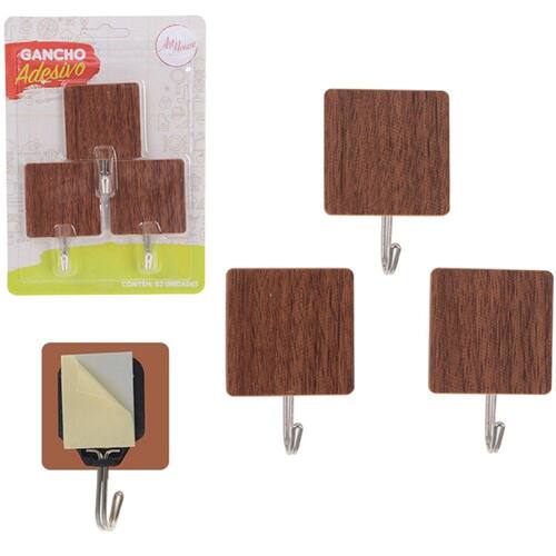 Kit 3 Ganchos Adesivo Para Parede Quadrado De Plastico - Marrom