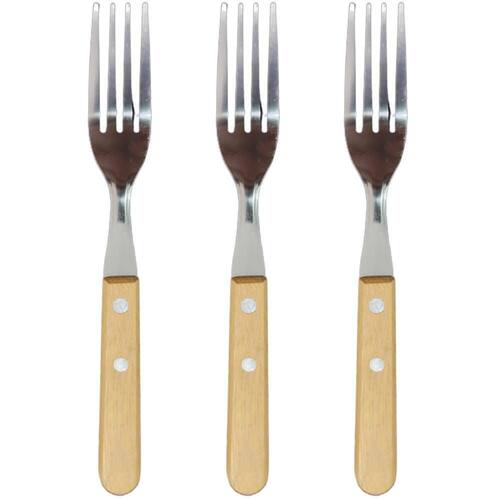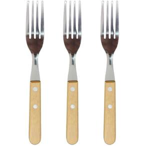 3 Garfo De Mesa Inox Com Cabo De Madeira 19 cm Kit contendo 3 Garfos de Mesa Inox com cabo de madeira 19 cm