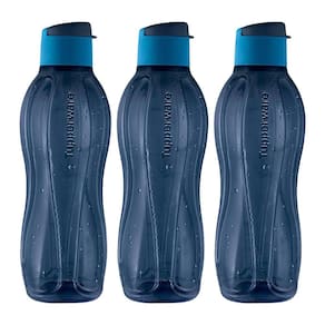 O Kit Contém: 3 Garrafas de Água Tupperware Eco Tupper Azul de 1L cada.