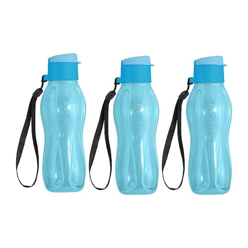 O Kit Contém: 3 Garrafas de Água Tupperware Eco Tupper Azul Claro de 310ml cada.