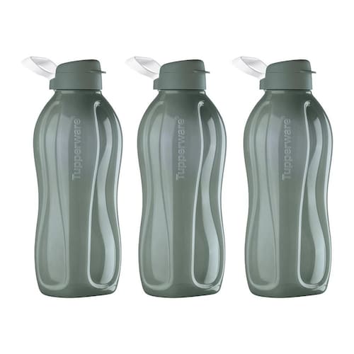 O Kit Contém: Kit 3 Garrafas de Água Tupperware Eco Tupper Cinza de 2L cada.