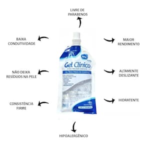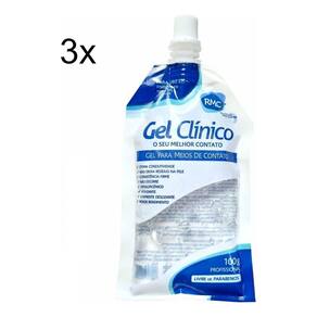 GEL CLINICO CONDUTOR - KIT COM 3 UNIDADES DE 100 MLO Gel Clínico RMC é inodoro e hipoalergênico. Sua composição é livre de álcool e sais, não provocando o ressecamento do cabeçote dos aparelhos e aumentando assim a vida útil dos mesmos, indicado pelos maiores fabricantes de equipamentos médicos e estéticos. Sua consistência é firme e de fácil remoção, não escorre e não gruda. Possui teste de análise dermatológica aprovado pelo Instituto de Pesquisa Adolfo Lutz, um dos mais renomados institutos de pesquisas do Brasil.