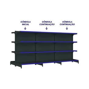 Nosso kit com 3 gôndolas de centro na cor preta é ideal para armazenamento e exposição de produtos em supermercados, mercearias, farmácias, lojas de utilidades, materiais de construção, agropecuárias, e muito mais, variando de acordo com a capacidade de peso de cada modelo.com 1,37m de altura, esta gôndola proporciona uma exibição eficiente dos produtos, maximizando o espaço vertical da sua loja e permitindo uma organização prática e acessível.as gôndolas possuem uma capacidade de 40kg por bandeja. com pintura eletrostática epóxi, antibacteriana, uniforme e resistente.possui bandejas com inclinação em 3 posições e bandejas reguláveis na coluna a cada 25mm, o que permite adição de bandejas extras. a bandeja é construida em chapa 26 (espessura de 0,50mm). fundo da bandeja quadrado para melhor exposição.pés com regulagem de altura, colunas dupladas e tratamento especial da superfície.a gôndola é prática e fácil de montar, com sistema de encaixe sem utilização de parafusos. você pode instalar suas gôndolas rapidamente, sem complicações, permitindo que você comece a exibir seus produtos em pouco tempo.todas as nossas gôndolas possuem qualidade, resistência e durabilidade garantidas pelo uso de matérias-primas de alto padrão, processos produtivos com a mais atual tecnologia e um cuidado especial em cada etapa.modernas e elegantes, nossas gôndolas são projetadas para destacar seus produtos e criar um ambiente agradável de compras para seus clientes, incentivando a exploração e aumentando as vendas.aproveite ao máximo cada centímetro disponível em sua loja com nossas gôndolas projetadas para maximizar o espaço de exposição, permitindo uma ampla variedade de produtos em um layout eficiente.- capacidade de 40kg por bandeja;- colunas dupladas: com sistema de encaixe, sem utilização de parafusos;- tecnologia exclusiva de apoio sgl;- pés reforçados e com regulagem;- bandejas inclináveis: oferece 3 opções para melhor exposição;- bandejas reguláveis a cada 25mm: possibilidade de adicionar bandejas extras;- reforço na base e bandeja: para maior capacidade de carga e estabilidade;- bandeja é construida em chapa 26;- ponteira da coluna: maior proteção e durabilidade.*porta etiquetas: vendidos separadamente, em variadas opções de cores.> o kit contém- 01x gôndola new premium 1,37m preta centro inicial- 02x gôndola new premium 1,37m preta centro continuação> especificaçõesgôndola centro inicialmodelo: gôndola de centro iniciallinha: fit 40altura: 1,37mcor: pretaquantidade de bandeja: 8 (4 em cada lado)peso suportado por bandeja: 40kgchapa: 26gôndola centro continuaçãomodelo: gôndola de centro continuaçãolinha: fit 40altura: 1,37mcor: pretaquantidade de bandeja: 8 (4 em cada lado)peso suportado por bandeja: 40kgchapa: 26> medidas do produtogôndola centro inicialaltura: 1,37mlargura: 0,96mpeso: 28kglargura da bandeja: 0,90mprofundidade da bandeja base: 0,40mprofundidade das bandejas superiores: 0,30mgôndola centro continuaçãoaltura: 1,37mlargura: 0,93mpeso: 23kglargura da bandeja: 0,90mprofundidade da bandeja base: 0,40mprofundidade das bandejas superiores: 0,30m> garantia- 6 meses> troca e devoluçãomediante termos da política de trocas e devoluções da empresa.