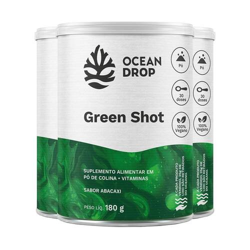 Kit 3 Green Shot Ocean Drop Vegano 180g Sabor Abacaxi O Green Shot é uma forma prática de aumentar o consumo de frutas e vegetais, ajudar na hidratação do corpo e fornecer ingredientes benéficos para a saúde. Ele possui ação antioxidante, melhora a imunidade, auxilia na formação de colágeno e no metabolismo energético, além de complementar a ação desintoxicante de uma dieta saudável. Modo de consumo: - Diluir 1 colher de sobremesa aproximadamente 6g em 100ml de água ou conforme recomendação . - Produto com duração de 1 mês. Composição: - Polpa de abacaxi, extrato de couve, polpa de água de coco, polpa de maçã, extrato de pepino, gengibre em pó, matchá Camellia Sinensis , bitartarato de colina, polpa de limão, ácido ascórbico, betacaroteno, acetato de DL alfa tocoferol, cianocobalamina, coenzima Q10, acidulante ácido cítrico, aromatizante e antiumectante dióxido de silício. - NÃO CONTÉM GLÚTEN. Indicação: - Desintoxicante - Efeito Detox. - Antioxidante. - Metabolismo e Oxidação de Gorduras. Contraindicação: - Este produto é indicado para o grupo populacional maior de 19 anos. - Não deve ser consumido por gestantes, lactantes e crianças. - Este produto não é um . Sabor: Abacaxi. Marca: Não Informado Ean: 7908609532522