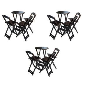 Kit 3 Jogos De Mesa Bistrô De Madeira Dobrável Com 3 Banquetas - Tabaco