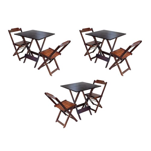 Kit 3 Jogos De Mesa Dobravel Com 2 Cadeiras De Madeira 70x70 Para Restaurante E Bar - Imbuia