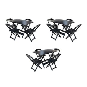 Kit 3 Jogos de Mesa Dobravel com 4 Cadeiras de Madeira 120x70 para Restaurante e Bar - Preto - Preto