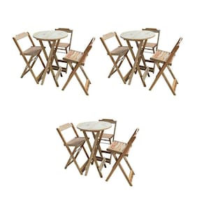 Kit 3 Jogos De Mesas Bistrô De Madeira Dobrável Com 3 Banquetas - Crua