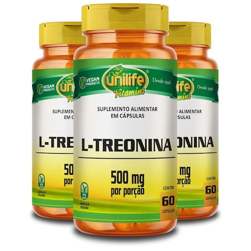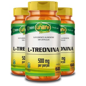 Kit 3 l-treonina unilife 500mg 60 cápsulas Modo de uso: Sugere-se a ingestão de 2 cápsulas ao dia após a refeição. Ingerir com líquido. Ingredientes: L-treonina, agente de massa celulose e antiumectantes dióxido de silício e estearato de magnésio. Cápsula: gelatina vegetal e água purificada. Peso total de cada cápsula: 500mg. Não contém glúten. Livre de lactose. Produto vegano. Produto autorizado para comercialização em todo o território nacional através do anexo i da rdc 240/2018 da anvisa. Afe do ms 6.02234-1. Marca: Não Informado Ean: 7908609549056