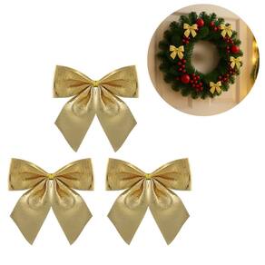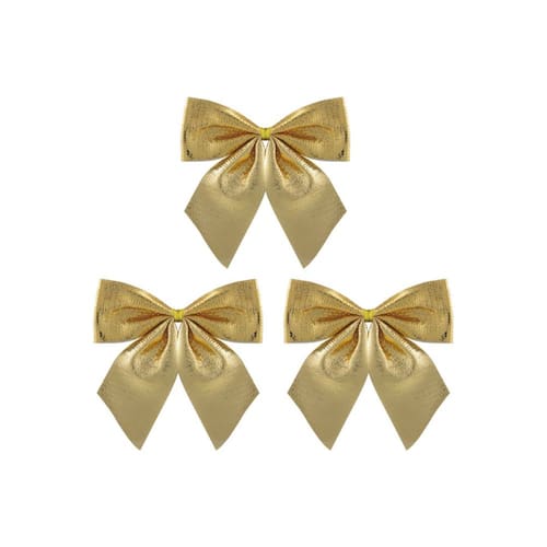 Kit 3 Laços Natalinos Dourado Brilho Suave 10x9cm – Ideal para Árvore de Natal, Guirlandas e Arranjos