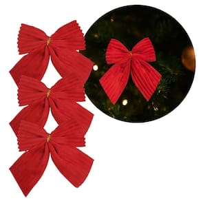 • 01 kit com 3 Laços Natalinos Vermelho Canelado Premium (10 x 10 cm)