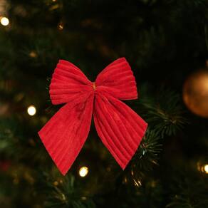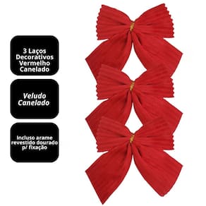 Deixe sua decoração de Natal ainda mais charmosa com o Jogo 3 Laços Natalinos Vermelho Canelado Premium, produzido em tecido de poliéster com textura tipo veludo canelado, proporcionando um visual sofisticado, elegante e de alta qualidade.