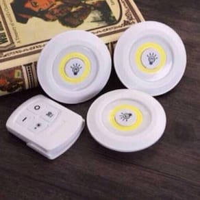 Kit 3 Lâmpada Luminária Led Sem Fio Controle Remoto Especificações: LED: LED de 5W COB Brilho: 150 Lumens Montagem: fita dupla face Tipo de bateria: 3 pilhas AAA Tipo de bateria de controle remoto: 2 pilhas AAA Tipos de acendimento: toque ou controle remoto Distância de controle: até 4 metros O pacote inclui: 3 - led cob 1 - controle remoto 3 - Meses de Contra Defeitos de Fabricação Ean: 7895772612390